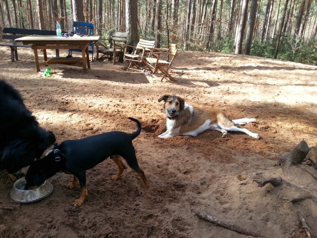 es geht uns gut!! Hier ein Foto von heute morgen, nach dem langen Gassi, beide sind sehr entspannt, Pepe macht enorme Fortschritte, die Erziehung hat begonnen...