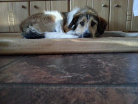 meiste Zeit in seinem Bettchen. Draußen läuft er ganz gut an der Leine,